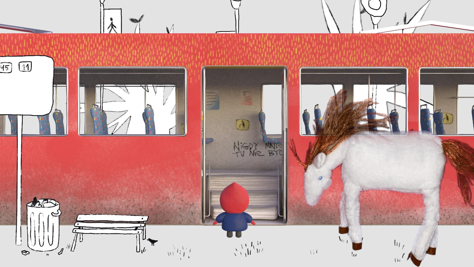 Między wizytami w urzędzie imigracyjnym, 20 minut jazdy tramwajem staje się dla kobiety podróżą w głąb wyobraźni, gdzie na przystanku czeka Koń, którego widzi tylko ona.